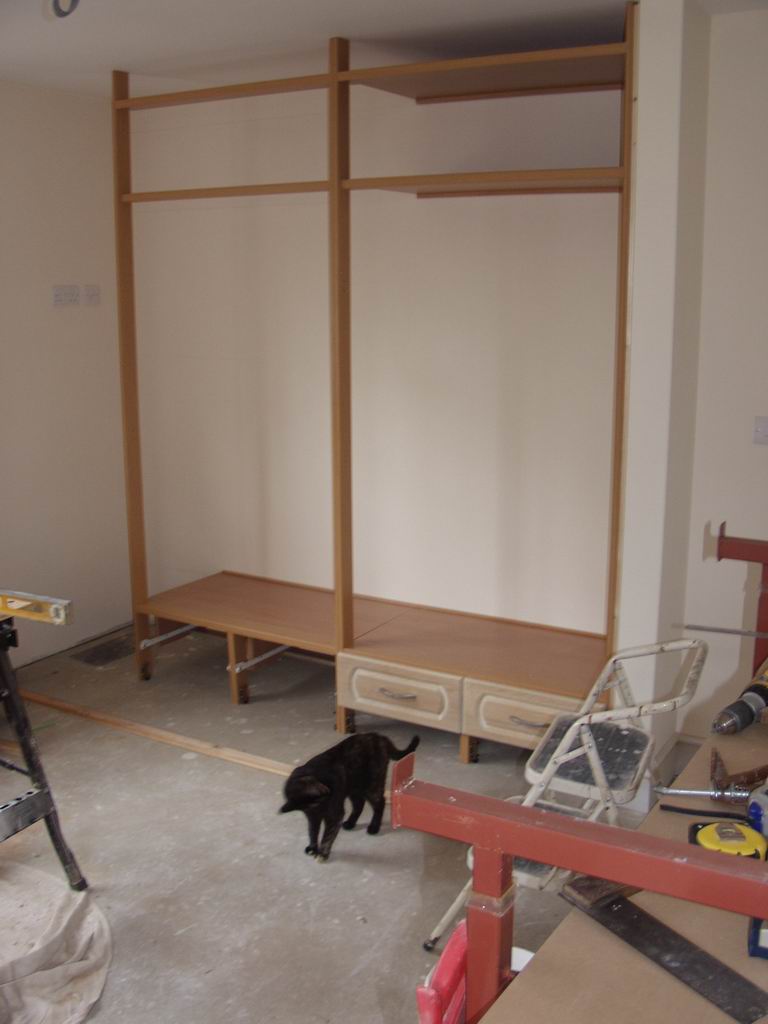 We planned to have fitted wardrobes in all three bedrooms and chose a modular system from Wickes. Steve fitted them himself ...... with help from one of our two cats!