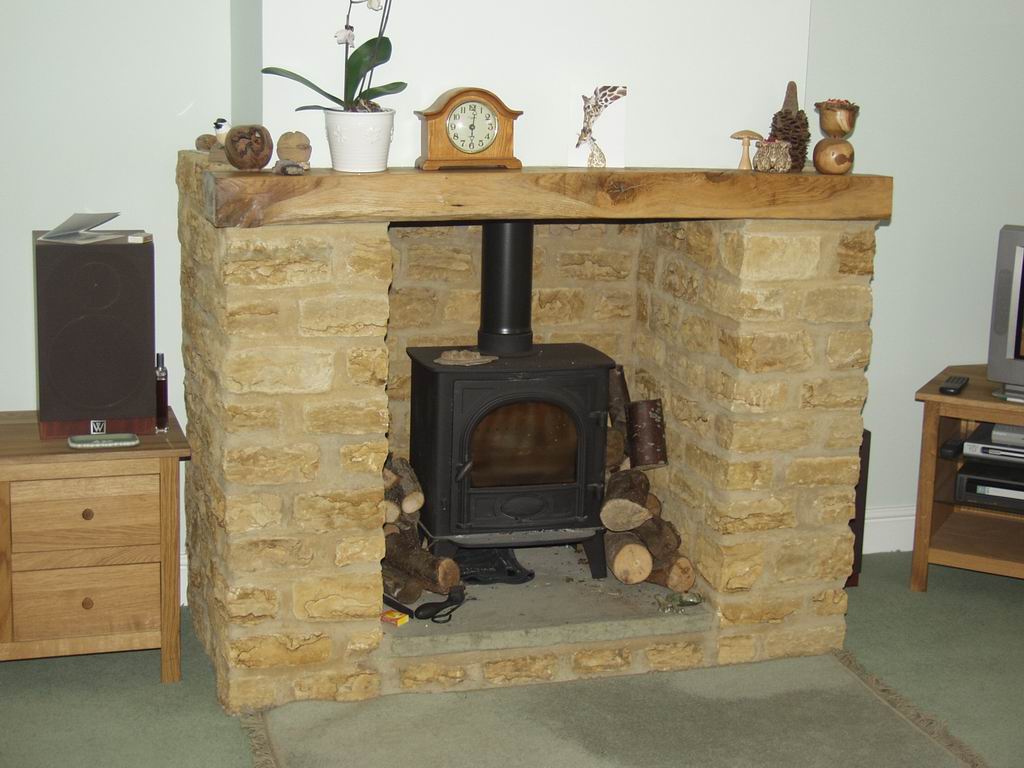 Early on in the design we planned to have a gas fire, but our love of "real fires" eventually persuaded us to go for a wood burner. We chose a Stovax Stockton 5 which was supplied and fitted by local firm "Just Stoves". It puts out an amazing amount of heat compared to the open fire in our old home. The piece of oak timber across the fireplace is a railway sleeper which Steve spent many happy hours sanding and oiling!