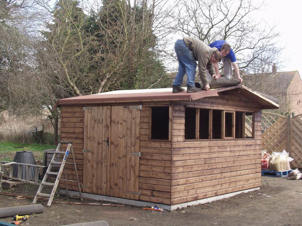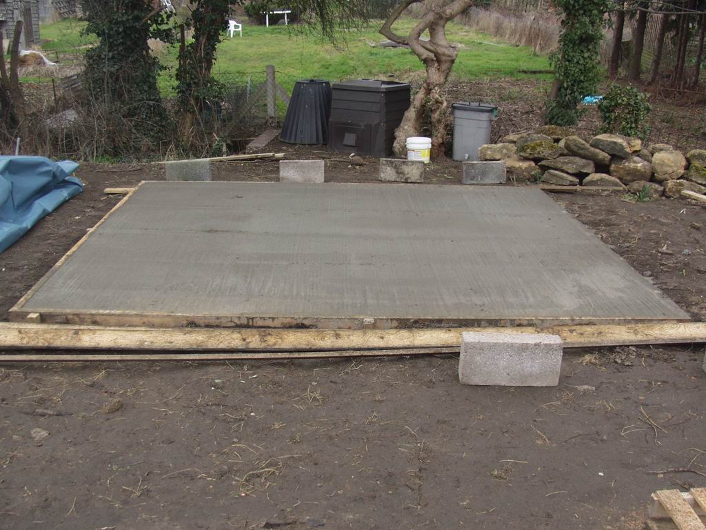 Betsy was keen to get the garden productive again as soon as possible, so a new potting shed was high on the list of priorities. Because of the tricky site access we bought a mixer and mixed up concrete for the base ourselves.