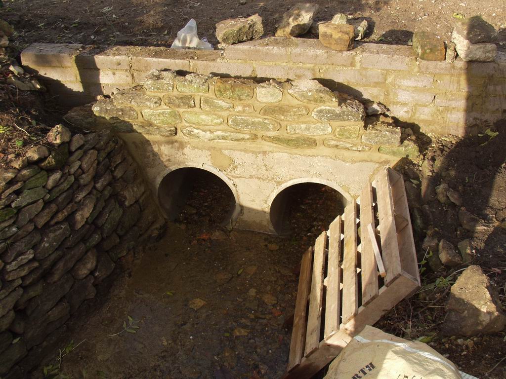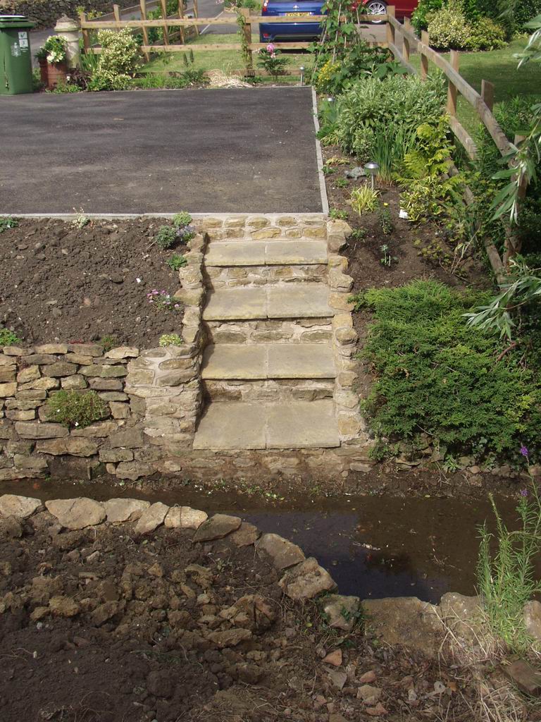 Steve then turned his hand to some stone wall work, building steps down to the stream, creating sidewalls and a headwall for the ditch, and making the bridge over the stream a bit more attractive.