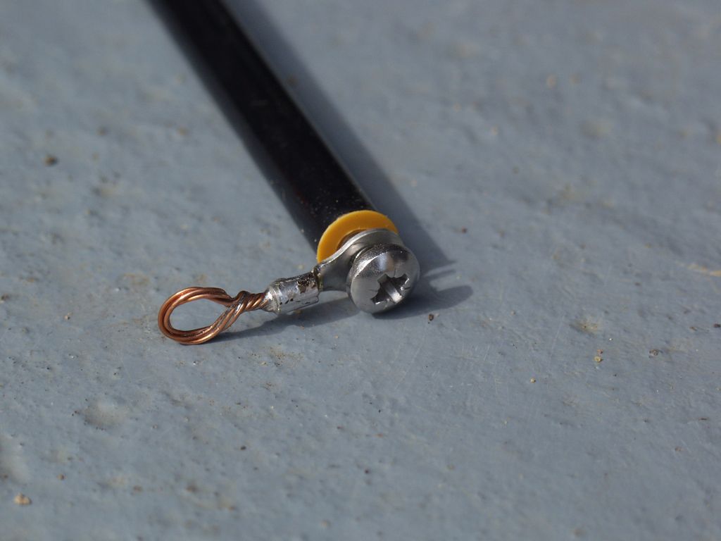 A view of the complete tip assembly. The attachment loops are fixed to the tips of the spreaders using a stainless steel screw.