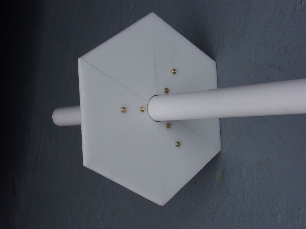 A view from above the baseplate showing the PVC centre post bolted in place.