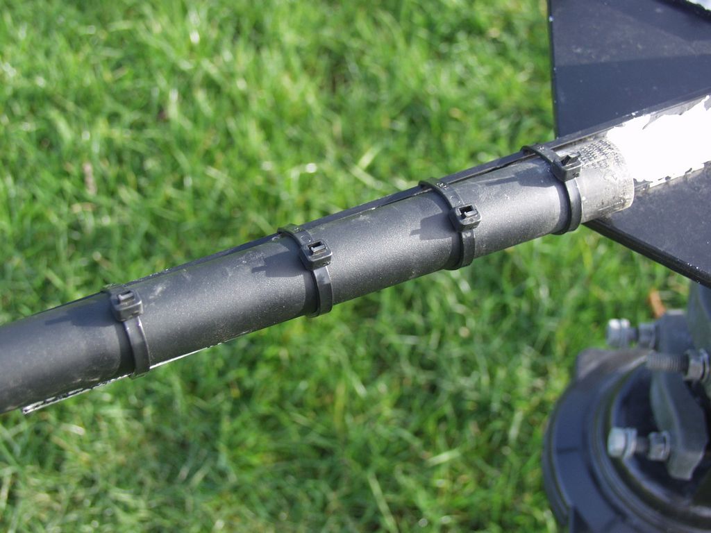 I used the same arrangement for fixing the spreaders as on the Mk 1. Four plastic tie-wraps hold the spreader to some aluminium angle which is bolted to the baseplate. Even this arrangement can easily crush the spreaders, so on my later designs I support the spreaders in aluminium tubes.