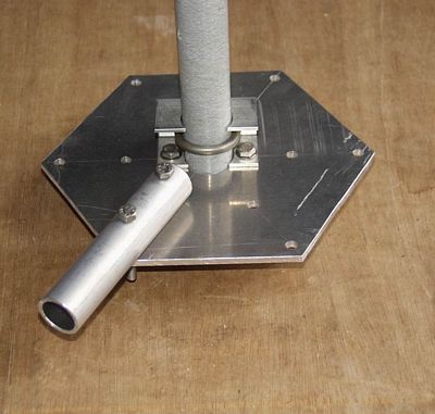 For my broadband hexbeam I used aluminium tubing to support the spreaders and fabricated a bracket to hold the baseplate to the fibreglass centre post.