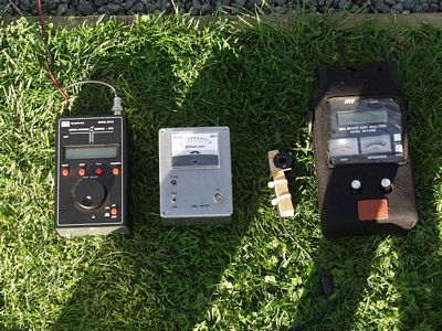 Essential testgear: a Palstar ZM30 analyser for impedance measurements and for use as a signal source; a wide dynamic range, broadband signal strength meter; the current probe extension for the meter; an MFJ 259B - just to check that the ZM30 is telling me the truth!
