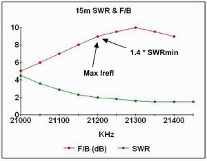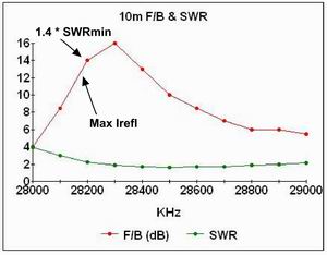 At the frequency of maximum F/B the SWR is 1.9:1 - it falls at higher frequencies and rises rapidly at lower frequencies.