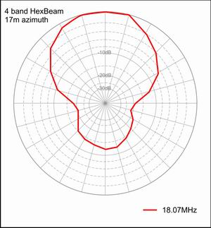 I carried out only limited "on air" testing with other Amateur Stations. The few F/B measurements I made - both transmitting and receiving - produced values that were somewhat better than the figures presented here. For example I typically measured F/Bs of around 18dB on 17m compared to a peak figure of 12dB when range testing. This may simply be a result of different elevation arrival angles between the "on air" signals and the test source signal, but I note that Mike Traffie claims on his commercial Hexbeam website to see the same sort of improvement with sky-wave signals compared to line-of-sight signals.