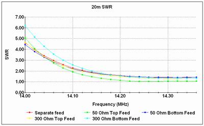 We will now look at how the various feed options affect the SWR, firstly on 20m and secondly on 10m.