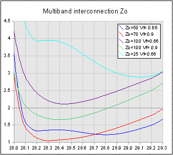 - Zo=70 / Vf=0.9 typical of twin-feeder that could be constructed with very careful attention to insulation thickness and line spacing. See the Twin feed experiment page for more details;