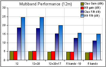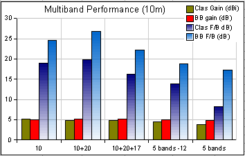 - the 17m, 15m, 12m and 10m band performance, particularly the F/B ratio, suffers to varying degrees from the addition of other bands. The general trend is that the bands closest (in distance and in frequency) have the greatest effect;