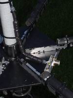 The photographs on this page show some of the construction techniques I used in building two 4-band Classic Hexbeams. The photographs may give you some ideas on how to build one for yourself, but if you need step-by-step instructions take a look at K4KIO's website. My Mk1 beam suffered in the gales which hit the UK in early 2007, so I built a Mk2 using a more robust baseplate and centre post arrangement. Click on any of the photos to see a "supersize" version.